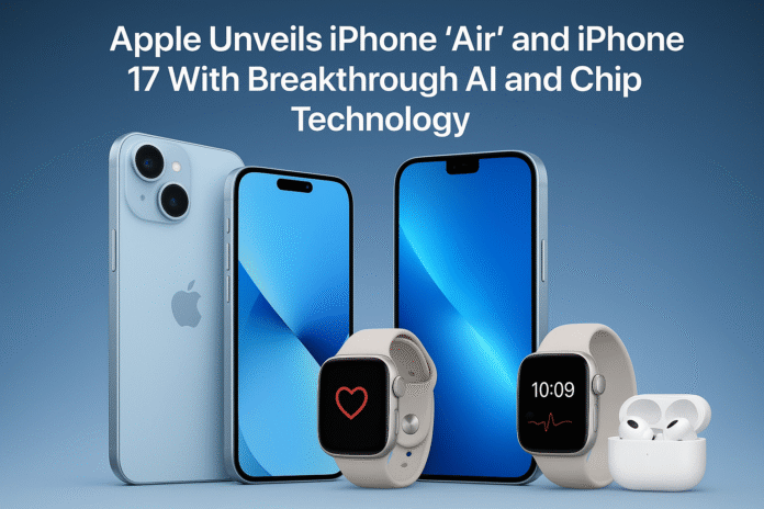 Cupertino- 10th September, 2025: Apple on Tuesday unveiled its latest line-up of devices, headlined by the brand-new iPhone Air, a slimmer and lighter model featuring a high-density battery and touted as the company’s most durable and thinnest iPhone yet. Alongside it, Apple also introduced the iPhone 17, powered by the all-new A19 processor, and refreshed versions of its Apple Watch and AirPods Pro. The iPhone 17 brings major upgrades to Apple’s flagship smartphone.